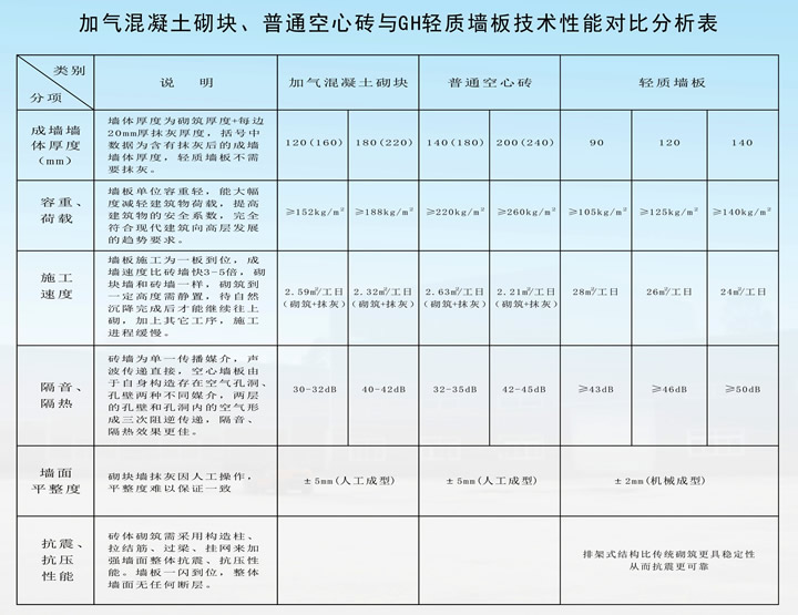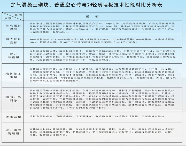加氣混凝土砌塊、普通空心磚與GH輕質(zhì)墻板技術(shù)性能對比分析